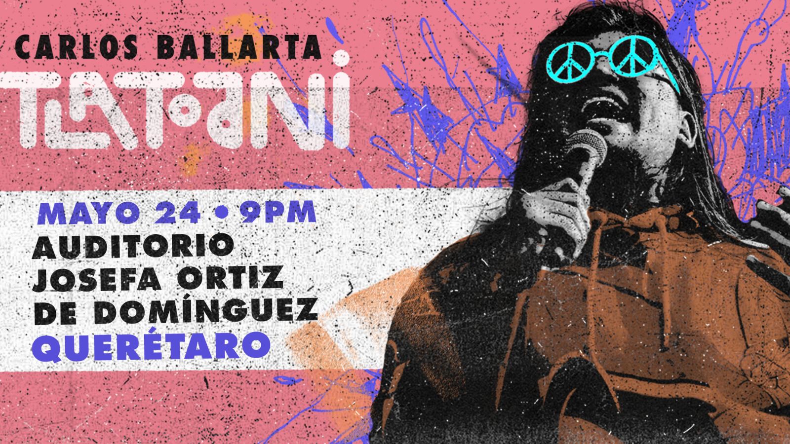 Ver próximos eventosCarlos Ballarta presenta su quinto show de stand-up “Tlatoani”. Carlos Ballarta es un comediante de stand up y actor mexicano, oriundo de la Ciudad de México, con 10 años de trayectoria en la escena de habla hispana. Cuenta con tres especiales de stand up en Netflix: El amor es de put*s (2016), Furia ñera (2018) y Falso profeta (2021), más un cuarto especial, Rebelde Comodino, próximo a estrenarse por Youtube. Se ha presentado por todo el territorio mexicano, América Latina, Estados Unidos, Canadá, y en varias ciudades de España, Francia, Alemania e Inglaterra